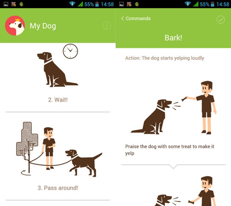 Научить собаку выполнять самую нехитрую команду вроде "сидеть" дело вообще-то довольно хитрое. Но приложение Dog training поможет немного упростить задачу. Нужно выбрать команду, которую вы хотите разучить с собакой, а затем приложение пошагово и с иллюстрациями расскажет, как дальше проводить дрессировки. Всего команд 30, от самых простых, как "голос", до более сложных вроде сидения на задних лапах, но в бесплатной версии доступны далеко не все. Если команду удалось выучить, результатом можно похвастаться друзьям в Facebook или Twitter. Важная деталь: в отличие от других подобных приложений, для Dog training доступен перевод на русский язык. В переводном варианте приложение называется "Суперпес".