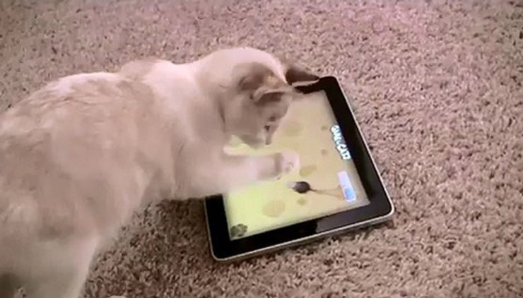 Магазины мобильных приложений предлагают внушительное количество игр, в целевую аудиторию которых совершенно не входят люди. Это игры для котов. В большинстве своем они работают по одному и тому же принципу. На экране планшетного компьютера появляется небольшой объект вроде мыши или светового пятна от лазерной указки, который начинает хаотически двигаться. Будучи в настроении поиграть, коты сначала замирают над экраном планшета, а затем начинают "ловить" лапой мышку на экране. Тачскрин планшета реагирует на кошачью лапу так же, как и на человеческий палец. Каждая словленная мышь — дополнительное игровое очко для вашего питомца. Правда, есть большие сомнения в том, что этот аспект игры их хоть немного интересует. В чем сомнений нет, так это в том, что миллионы людей готовы часами наблюдать за процессом игры: