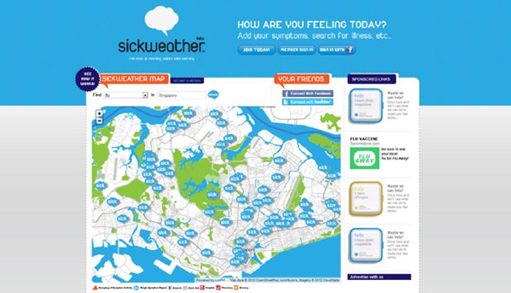 Человек – существо социальное, и именно это делает его очень уязвимым для болезней, передающихся воздушно-капельным путем. Однако именно эту особенность создатели приложения Sickweather решили использовать в борьбе с эпидемиями простуды и гриппа. Они заметили что, подцепив болезнь, человек тут же лезет в социальные сети пожаловаться и получить дозу утешения. И научили Sickweather анализировать все публичные записи в социальных сетях, включая Facebook и Twitter, которые содержат ключевые слова вроде "заболел" или "кашляю". При этом алгоритм автоматически отсеивает слова, употребленные в переносном значении, например: "болею за Динамо!". Используя данные местоположении, указанные в записях, приложение наносит их на интерактивную карту местности. В итоге, остальные пользователи знают, что неподалеку находится носитель ОРВИ, и могут избежать встречи с ним. Пока что приложение существует только на английском языке. Однако есть надежда, что авторы Sickweather добавят русскоязычную версию - ну или аналог создадут отечественные программисты.