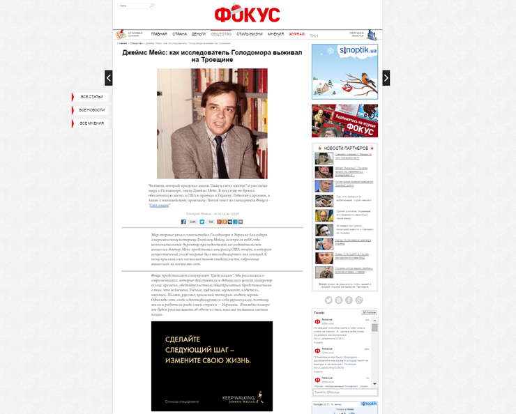 Журнал "Фокус" представил спецпроект "Свет нации", автором которого стал известный журналист Вахтанг Кипиани. В проекте журналисты рассказали истории людей, благодаря которым независимая Украина станола сильнее и успешнее. В поддержку публикаций в журнале материалы проекта появились и на сайте Фокус.юа.