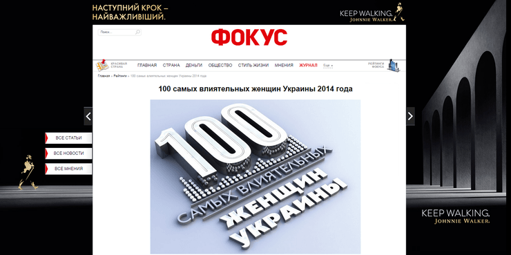 Рейтинг самых влиятельных женщин появился и на сайте Фокус.юа. Досье участниц спонсор спецпроекта дополнил цитатами об успехе и способах его достижения