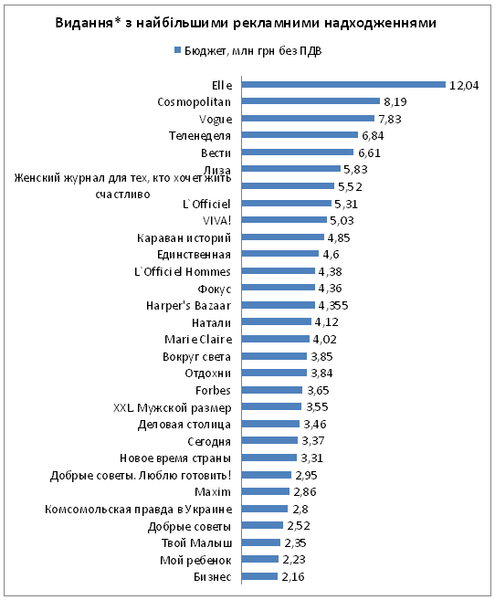 По данным мониторинга "Коммуникационного Альянса"* издание с доходом в 4,36 млн грн обошло ежемесячник Forbes Украина (3,65 млн грн) и еженедельник "Новое время страны" (3,31 млн грн).