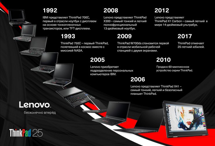 Следующая четверть века – это шанс для новых поколений изучить все возможности, которые открывает ThinkPad. Устройства этой линейки и дальше будут помогать нашим клиентам справляться с ежедневными вызовами – как в бизнесе, так и в других сферах их личностного развития.