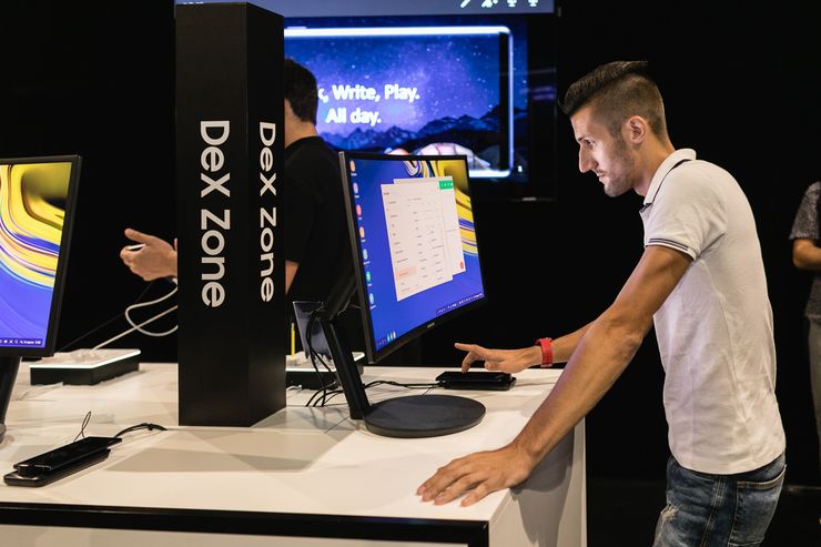 Решение для повышения производительности Samsung DeX в сочетании с Galaxy Note9 стало еще более универсальным. Новый компактный HDMI-адаптер делает использование Samsung DeX значительно более удобным. Поскольку необходимости в дополнительном устройстве больше нет, пользователи могут наслаждаться интерфейсом персонального компьютера в офисе, дома или во время поездок. Поддержка двух экранов дает возможность работать одновременно на Galaxy Note9 и подключенном дисплее. Кроме того, смартфон можно использовать как клавиатуру, тачпад или поверхность для создания рисунков с помощью S Pen.