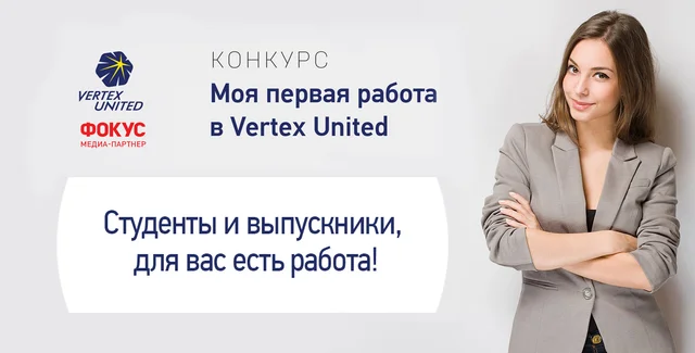 Инвестиционная компания Vertex United и журнал «Фокус» объявили о старте конкурса на стажировку в рамках совместного проекта «Моя первая работа». Успешных выпускников и студентов, как и в прошлом году, ищут в Киеве и Одессе.