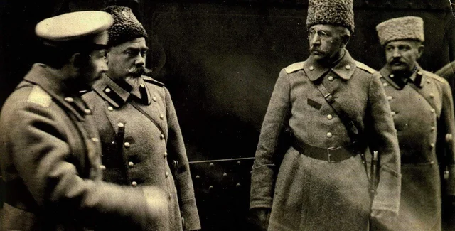 "Рухнуло государственное образование Юга, и осколки его, разбросанные далеко, катились от Каспия до Черного моря, увлекая людские волны... Наши войска, предводимые блестящей плеядой полководцев, окружающих главнокомандующего, вахмистры Буденный и Думенко отбросили к исходному положению".