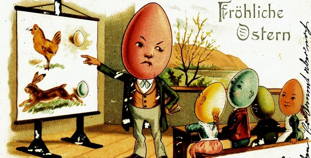 В старых пасхальных поздравительных открытках на удивление мало религиозного и много чистой радости от новой весны. Здесь почти нет церквей, крестов и икон, а вот языческие традиции и символы плодородия царствуют почти безраздельно