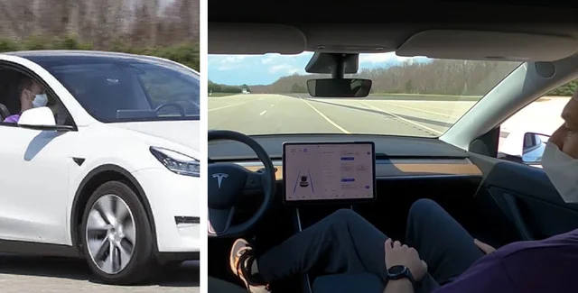 В тестовом Tesla Model Y они были привязаны к рулю, имитируя давление рук человека на него. Такой "утяжелитель" частично дезориентировал систему, а окончательно "обмануть" ее удалось с помощью еще одного нехитрого приема. Водитель перелез со своего места на пассажирское кресло через салон, оставить ремень безопасности защелкнутым в замке.