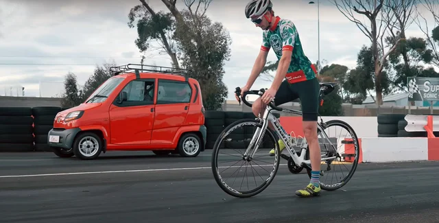 В общем, неудивительно, что с полным экипажем (4 человека) Bajaj Qute не смог ничего противопоставить профессиональному велогонщику, управлявшему велосипедом.