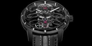 Под сапфировым стеклом в 44-миллиметровом титановом корпусе скрывается механизм, состоящий из 79 деталей, общий вес которого составляет 250 мг, а самая крупная деталь — всего 10 мм в диаметре. Водонепроницаемость часов — всего 30 метров, но в Girard-Perregaux логично предположили, что вряд ли кто-то из владельцев будет нырять глубже, не снимая их с руки.