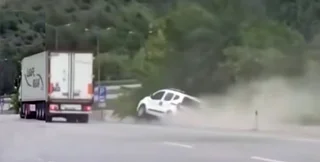 Форсаж по-турецки. На шоссе в Турции грузовик столкнул легковушку с дороги (видео)