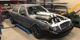 Удивительно, но получившийся в итоге "франкенштейн" всего на 200 кг тяжелее оригинального седана Crown Victoria 2006 года выпуска. К слову, автомобиль ранее служил в полиции и отличается усиленным кузовом, но чтобы выдержать тяжелый двигатель, переднюю подвеску установили от пикапа Chevy C10.