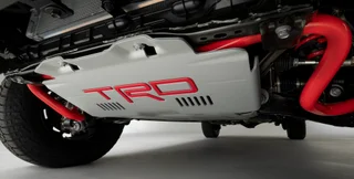 Опубликованные фото также показывают, что Tundra в версии TRD Pro будет иметь подвеску, ориентированную на бездорожье, с амортизаторами Fox. К ним присоединяются массивный передний стабилизатор поперечной устойчивости и крепкая защита двигателя с логотипом TRD.