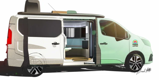 Подразделение Renault Design представит на выставке Сaravan Salon в Дюссельдорфе оригинальный кемпер на шасси Renault Trafic. Премьера необычного концепта состоится уже 27 августа. Новый автомобиль назвали Hippie Caviar Hotel.