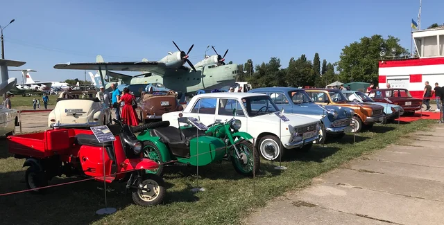 На ул. Медовая, 1 в Киеве среди многочисленных самолетов и вертолетов в очередной раз будут показаны сотни единиц старых автомобилей, грузовиков, автобусов, велосипедов, мопедов, мотороллеров, мотоциклов и военной техники со всего мира – некоторым из которых уже более 80 лет.