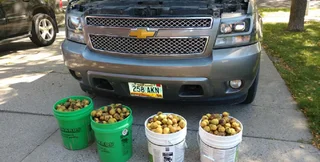 Владелец Chevrolet Avalanche собрал под капотом автомобиля семь ведер орехов. Для этого пришлось разобрать переднюю часть авто.