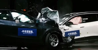 В Китае провели нестандартный краш-тест электромобилей. Безопасность кроссоверов Tesla Model Y и Volkswagen ID.6 Crozz решили проверить, столкнув их лоб в лоб. Видео испытания опубликовал Youtube-канал Car Crash Test.