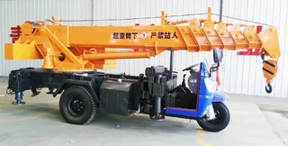 В Китае решили скрестить автокран и мотоцикл. Он способен поднимать до 3 тонн груза.