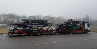 На автовозе – целая коллекция из шести машин 60-70-х годов выпуска. Все машины выглядят очень хорошо и очевидно пополнят чью-то коллекцию.