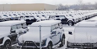 Сотни новеньких Ford Bronco припадают снегом на складе: их не могут доставить покупателям (видео)