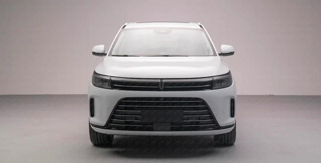 Китайский кроссовер выглядит довольно сдержанно и отличается по дизайну от младшего AITO M5. У него высокий капот, широкий воздухозаборник в бампере и фонари на всю ширину кузова.