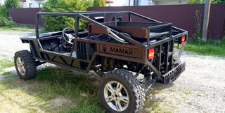 Четырехместное багги "Мамай" отличается простой конструкции и может быть дополнено креплениями для пулемета или для носилок. Автомобиль подготовлен к серьезному бездорожью и может разворачиваться на месте.
