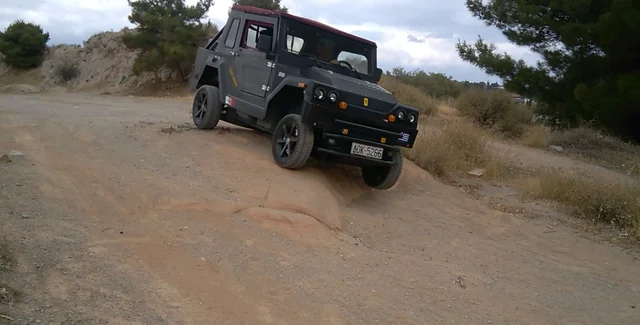 Первый греческий автомобиль отличается угловатым дизайном и немного напоминает уменьшенный Hummer. Внедорожник получился даже компактнее, чем Suzuki Jimny.