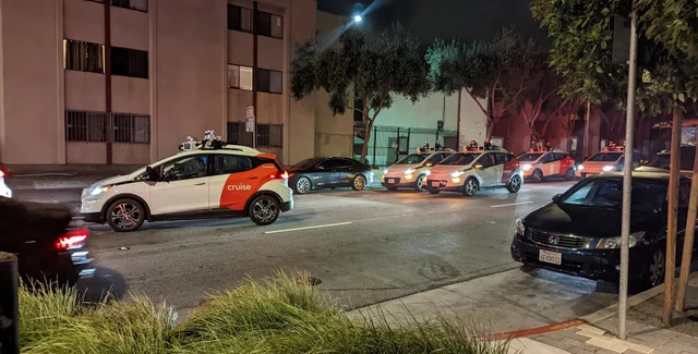 По неизвестной причине около полуночи беспилотные такси съехались на одну улицу и как по команде остановились там. В результате посреди ночи образовалась огромная пробка.