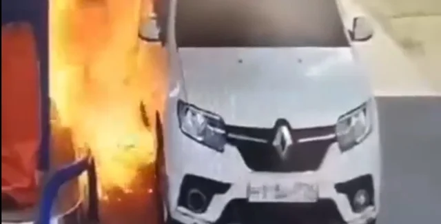 В России водитель закурил во время заправки авто и чуть не сжег АЗС. Теперь он в больнице, а его Renault Logan требует ремонта.