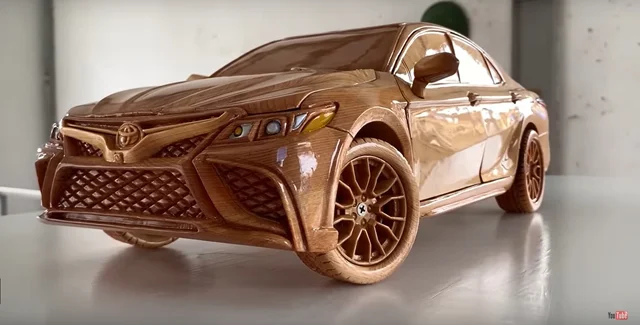 У Toyota Camry появилась нестандартная масштабная копия. Популярный массовый седан воссоздали из дерева. Особенности модели и процесс ее постройки показали в видео на Youtube-канале Woodworking Art.