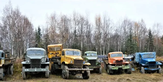 Конкретно эти авто никогда не принимали участия в боевых действиях – их использовали при строительстве трассы на Аляске в 1942 году. По его завершению машины так и бросили в глуши. Как ни странно, за 80 лет некоторые грузовики очень неплохо сохранились и не стали грудами металлолома. Их вполне можно отреставрировать.