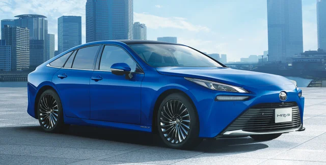 Toyota Mirai оснащена водородными топливными ячейками вместо аккумуляторной батареи. Электрокар обладает запасом хода 640 км и заправляется всего за 5 минут.