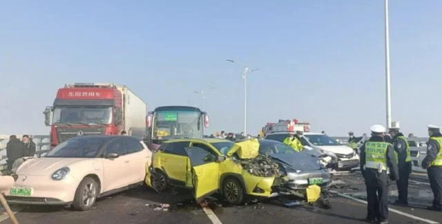 Авария произошла сегодня утром в окрестностях города Чжэнчжоу на мосту через реку Хуанхэ. Из-за сильного тумана видимость на трассе снизилась до всего 200 метров и именно это и стало причиной ДТП.