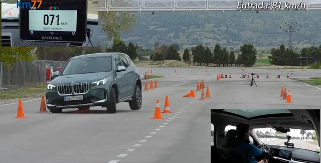 На контрольной скорости 81 км/ч (на которой X3 прошел "лосиный" тест) BMW X1 сбил несколько конусов. Экспертам пришлось снизить скорость до 74 км/ч, чтобы успешно пройти испытание. Водитель попытался справиться с тестом на скорости 78 км/ч, но кроссовер снова потерял управление.