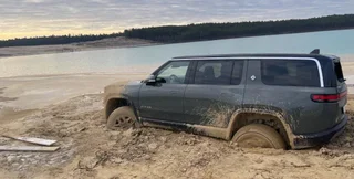 Доставали экскаватором: новый электровнедорожник Rivian намертво застрял на пляже (фото)