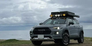 Кроме того, кроссовер Toyota Corolla получил более выраженный пластиковый обвес, защиту днища и 16-дюймовые внедорожные шины. На крыше появились дополнительные фары, багажник с большими 52-литровыми ящиками и раскладывающийся тент.