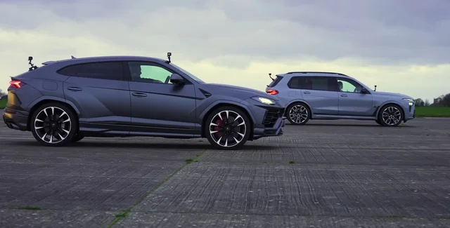 Оба кроссовера показали достойные результаты в гонке по прямой. Lamborghini Urus и BMW X7 M60i сражались на равных, но победителем заезда смог стать только один автомобиль.