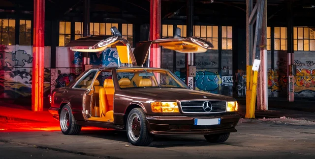 За основу взяли стандартное купе Mercedes 500 SEC C126. Автомобиль оснастили поднимающимися вверх дверями, как у знаменитого Mercedes 300 SL Gullwing – получилось очень эффектно.