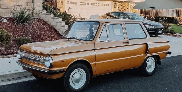 В американском пригороде "Запорожец" смотрится очень колоритно. К тому же автомобиль отреставрирован до идеального состояния и перекрашен в карамельный цвет.
