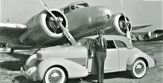 Салон Cord 812 выполнен в авиационном стиле, что не могло не понравиться летчице. А еще это первое в мире авто с выдвижными фарами. Кабриолет оснащен 4,7-литровым 125-сильным V8 и способен развить 150 км/ч.