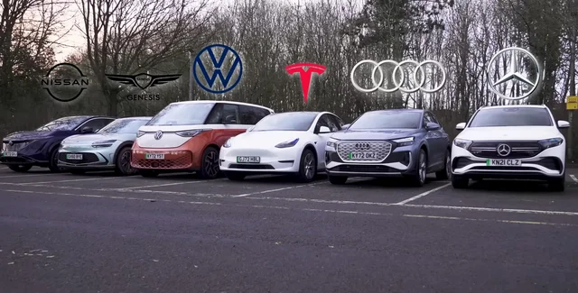 Для ролика выбрали шесть электрокаров: Nissan Ariya, Genesis GV60, Volkswagen ID.Buzz, Tesla Model Y, Audi Q4 e-tron Sportback и Mercedes-Benz EQA. Все они доступны на европейском рынке.