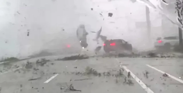 Очевидцы поделились, что видели, как торнадо повалил деревья и подкидывал вверх автомобили. К счастью, сообщений о пострадавших не поступало.