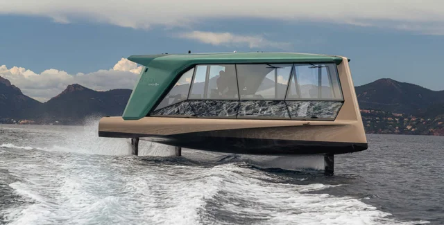 Катер на подводных крыльях оснащен двумя 136-сильными электромоторами. Он способен разгоняться до 30 узлов (55 км/ч), а его крейсерская скорость составляет 28 узлов (44 км/ч).