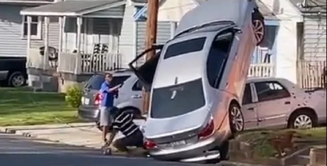 Многие пользователи отметили, что водителю не стоило самостоятельно оттаскивать автомобиль. Седан мог покатиться прямо на него и нанести мужчине травму.
