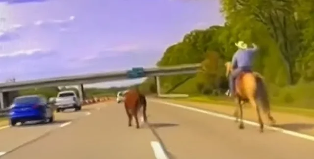 Как на Диком Западе: в США ковбой помог поймать корову, которая выбежала на шоссе (видео)