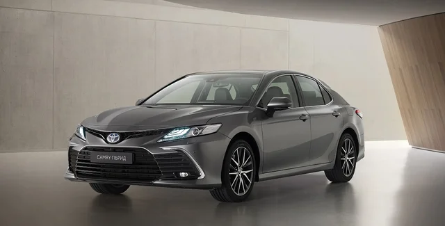 Toyota Camry 2.5 Hybrid e-CVT оснащена 218-сильной силовой установкой. В список оснащения входят круиз-контроль, климат-контроль, ионизатор, датчики дождя и освещения.