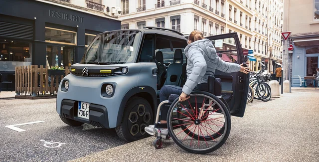 Новый Citroen Ami For All перевели на ручное управление и приспособили для водителей в инвалидных колясках. Во многих странах для управления таким авто не нужны права.