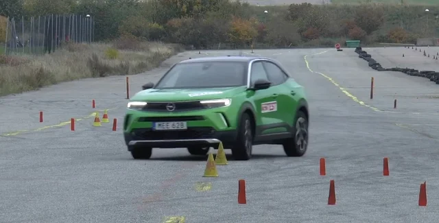 Opel Mokka-e прошел лосиный тест на скорости выше необходимой. В испытании участвовал электрокроссовер с электромотором мощностью 136 л.с. и 260 Нм крутящего момента.