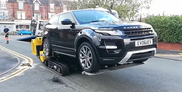 Eastract используется не только для борьбы с неправильно припаркованными автомобилями. В Британии робот помог эвакуировать кроссовер Land Rover Range Rover Evoque с неисправной трансмиссией.