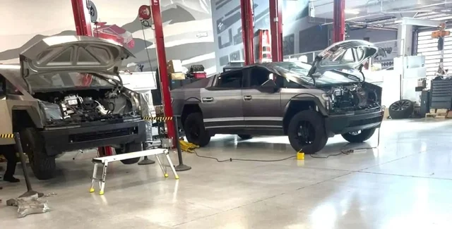 Несколько Tesla Cybertruck обклеили специальной пленкой, что сделало их похожими на электрический пикап Ford F-150 Lightning. На пленке изображены характерные для Ford дверные ручки, а также фонари и выштамповки на кузове.